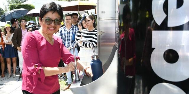 La doctora Lilia Cedillo recordó que a raíz de la pandemia los bebederos se dejaron de usar, lo que provocó daño en los filtros; ahora se modificó el sistema y se colocaron implementos de mejor calidad para brindar este servicio a los alumnos, apoyar su economía y contribuir a reducir el volumen de plásticos en el medio ambiente.