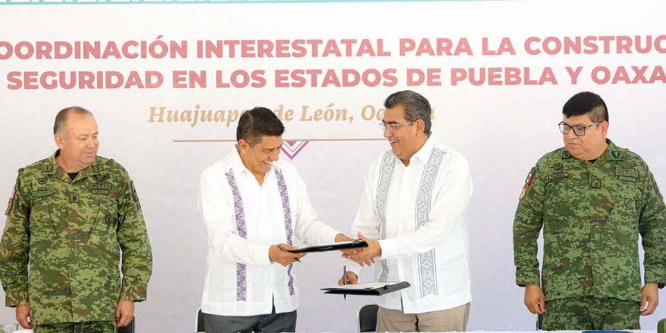 Para garantizar la seguridad, paz y bienestar en la zona limítrofe, el gobernador Sergio Salomón y su homólogo de Oaxaca, Salomón Jara Cruz firmaron un convenio de coordinación para impulsar acciones conjuntas en la materia.