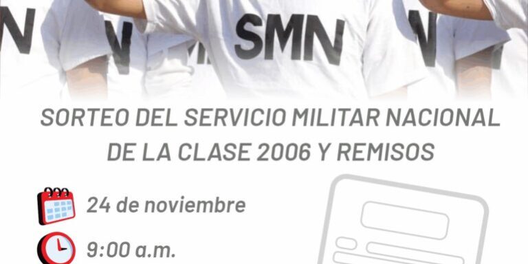 CUAUTLANCINGO, PUE. La Secretaría de Gobernación del Ayuntamiento de Cuautlancingo, en conjunto con el Campo Militar No. 25 A, “Cadete Vicente Suárez”, informa que el “Sorteo del Servicio Militar Nacional de la clase 2006 y remisos”, quienes fueron alistados durante el presente año en la Junta Municipal de Reclutamiento, será el 24 de Noviembre del 2024 a las 9:00 Hrs. en la Explanada Municipal.