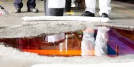 Durante la inspección, se identificó el derrame en un plafón, provocado por la ruptura estructural de tres bidones almacenados en el piso superior, los cuales se colapsaron debido al peso de otros envases.